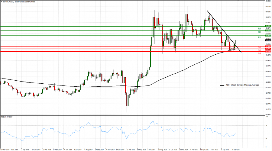 - NIVELET E REZISTENCËS DHE E MBËSHTETJES: Nëse argjendi arrin të mbetet mbi mesataren të thjeshtë lëvizëse 100-javore dhe nëse spekulatorët fillojnë të tregojnë në sinjalin e shitjes së tepruar të RSI-së 14-javore, pastaj mund të presim që çmimi të fillojë të rimëkëmbet, duke shkuar drejt Rezistencës 1, 24,800 e drejt Rezistencës 2, 25,700. Rezistenca 3 është në 26,500. Por, nëse çmimi nuk arrin të mbetet mbi mesataren e thjeshtë lëvizëse 100-javore, mund të presim që çmimi i argjendit të bjerë drejt Mbështejes 1, 22,900 dhe pastaj përsëri drejt Mbështetjes 3, 22.