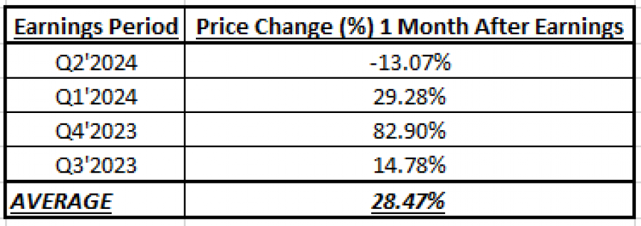 - ARM ROSE 28.47% ON AVERAGE IN ONE MONTH AFTER THE EARNINGS REPORT GOT RELEASED