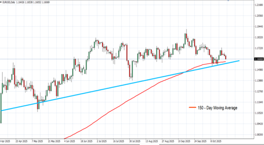 - KEY MOVING AVERAGE SUPPORTS: The 150-day moving average (red) is trending higher and remains below the current price. This alignment with the trendline confirms that the broader trend is still firm. As long as the currency pair stays above both supports, the overall outlook remains positive with potential for further increases. However, it could also decline.