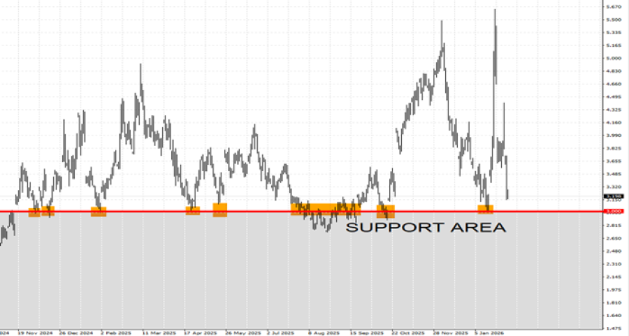 - SUPPORT: $3. Natural gas has maintained strong support near $3 since late 2024, testing the area eight times and confirming it as a solid support zone. However, it could also decline.