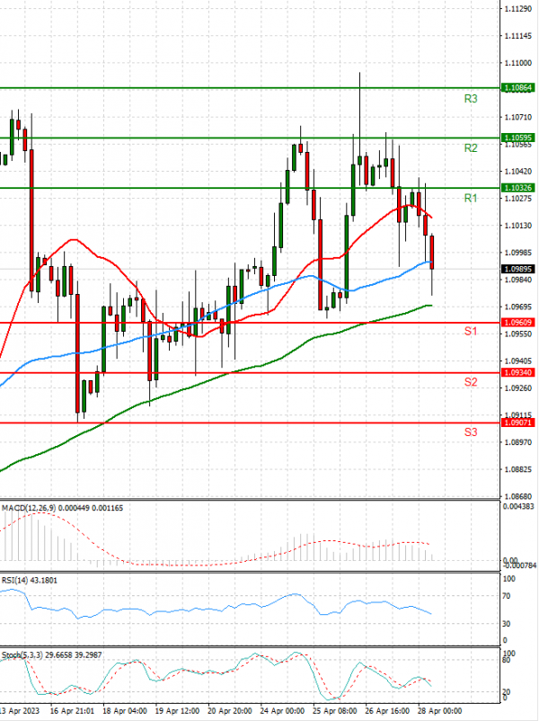 The EUR/USD pair was lower today. It is currently 1.0981. German GDP Quarter-on-Quarter for Q1 reported -0.1% vs 0.3% expected. German Unemployment Change for April printed 24k vs 10k. German CPI Month-on-Month for April will be reported today. French GDP Quarter-on-Quarter printed 0.2% as expected. Spanish GDP Quarter-on-Quarter for Q1 printed 0.5% vs 0.3% expected. Eurozone GDP Quarter-on-Quarter for Q1 was reported at 0.1% vs 0.2% expected. The United States will report the Core PCE Price Index Month-on-Month for March.