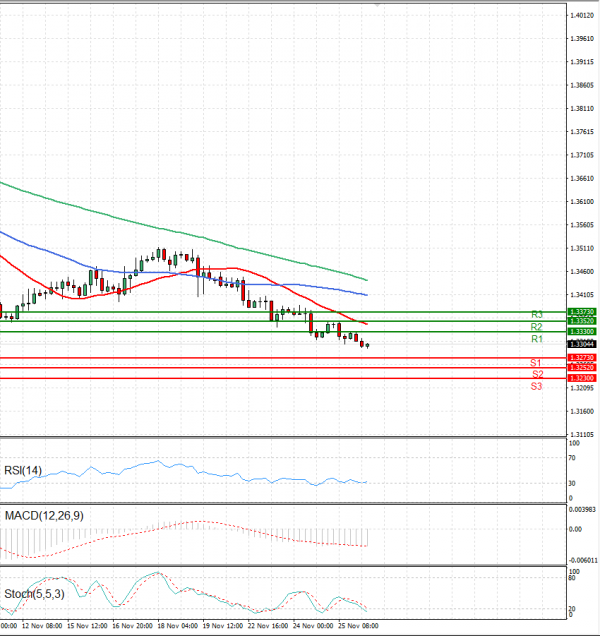 The British Pound USD currency pair fell to 1.3305 during the Asian session. The pair was broadly unchanged yesterday as the dollar edged lower. US markets were closed today celebrating the Thanksgiving holidays. There were no major data releases in the UK yesterday.