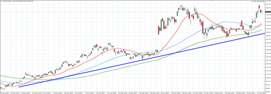 AMD HA ALCANZADO UN MÁXIMO HISTÓRICO DE 266,58 (29 DE OCTUBRE DE 2025). AMD cotizaba por última vez en torno a los 256 dólares. Desde principios de año, el precio de las acciones de AMD ha subido alrededor de un 20 %. Sin embargo, también podría bajar.