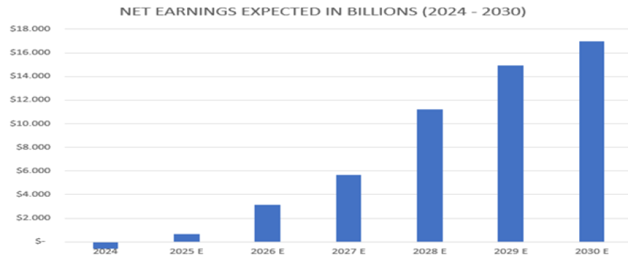 GANANCIAS NETAS (2024 – 2030): SE ESPERA QUE LAS GANANCIAS NETAS DE INTEL AUMENTEN UN 138,19% EN PROMEDIO ANUAL PARA 2030. Se espera que las ganancias netas crezcan de -566 millones de dólares en 2024 a 17 mil millones de dólares en 2030.