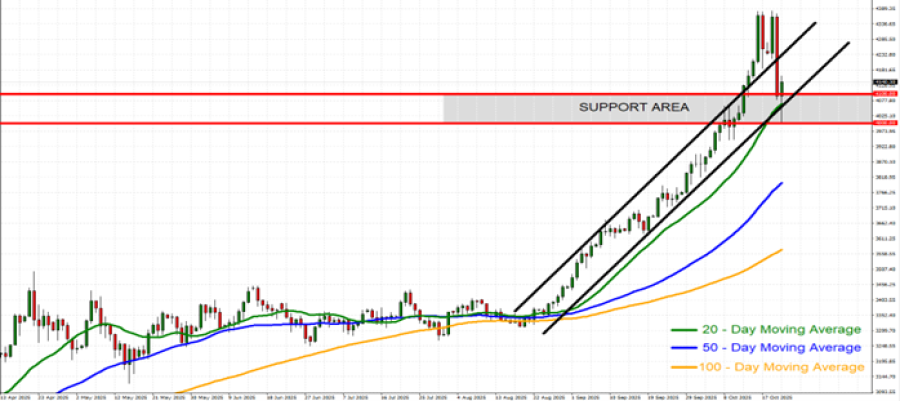 APOYO: $4.100 – $4.000. Tras alcanzar nuevos máximos históricos (4.381,34 dólares), el precio del oro ha formado otro nivel de soporte psicológico entre 4.100 y 4.000 dólares. Sin embargo, persiste el riesgo de una posible ruptura por debajo de este nivel si cambian las condiciones del mercado.