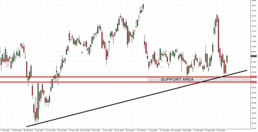 SOPORTE: $65 - $64. El gráfico diario a continuación también nos muestra que las acciones de PayPal han mantenido un área de soporte fuerte entre $65 y $64 desde abril de 2025.