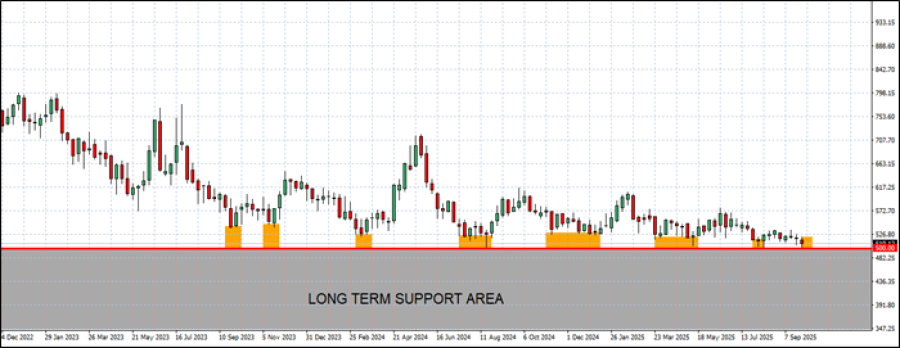 - SNAŽNA PODRŠKA NA OKO 500 USD: Od rujna 2023. pšenica je sedam puta testirala područje oko 500 dolara, a svaki put su se cijene pšenice oporavljale. Ovo je 8. put u posljednje dvije godine da su cijene pšenice testirale razinu od oko 500 dolara. (izvor: Fortrade Meta Trader 4).