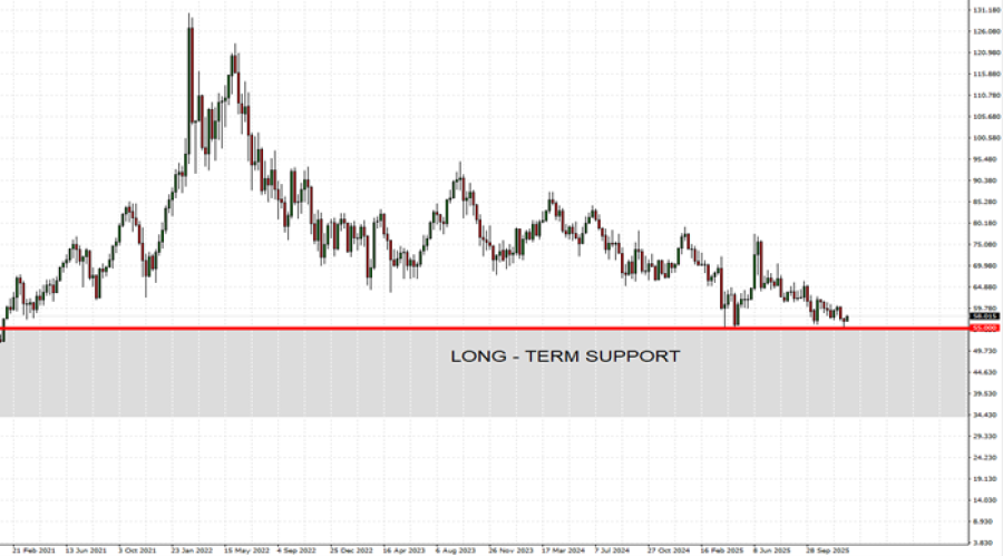 - TEHNIČKA PODRŠKA: 55 USD. Prema dnevnom grafikonu u nastavku, od 2021. godine sirova nafta je četiri puta testirala razinu od oko 55 dolara.