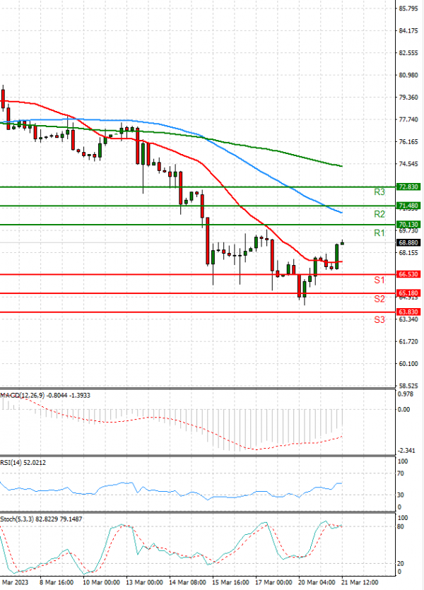 Нафтата порасна во вторникот, продолжувајќи го закрепнувањето од 15-месечниот минимум на претходниот ден, бидејќи спасувањето на Credit Suisse ги намали грижите за ризиците во глобалниот банкарски сектор кои би можеле да го погодат економскиот раст и побарувачката за гориво.