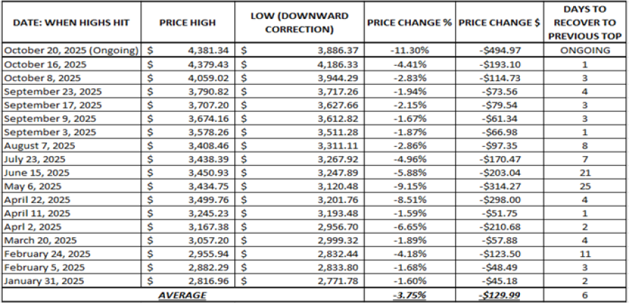• STATISTICS (2025): GOLD HAS UNDERGONE 17 DOWNWARD CORRECTIONS IN 2025, FOLLOWED BY PRICE RECOVERIES TO PREVIOUS TOPS.