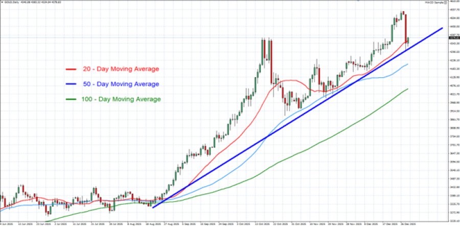 - GOLD PRICE HIT A NEW ALL-TIME HIGH ON DECEMBER 26, 2025 ($4,550.17). Since the beginning of 2025, the gold price has been rising solidly, hitting a fresh all-time high in December ($4,550.17), marking an increase of around 73%. However, the price could also decline. The current price of Gold stands around $4370, and if it recovers to its all-time highs, it could potentially rise by around 180 dollars. However, it could also decline.