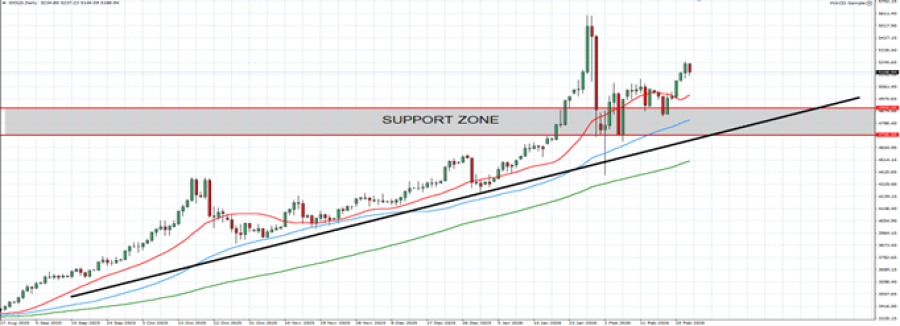 - SUPPORT AREA: $4,900 – $4,700. After the most recent downward price correction that took place in late January 2026, gold prices have found a support zone in the range between $4,900 and $4,700. However, it could also decline.