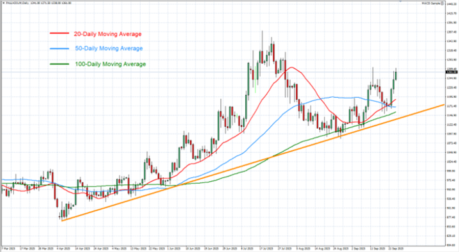 - FRIDAY, OCTOBER 3 AT 13:30 GMT+1: US NONFARM PAYROLLS (NFP) AND UNEMPLOYMENT RATE (SEPTEMBER). A weaker-than-expected payroll report and a rising unemployment rate would highlight a softening U.S. labor market, increasing expectations for further Federal Reserve rate cuts. For palladium, lower interest rates could support industrial activity and automotive production, boosting demand for the metal used in catalytic converters.