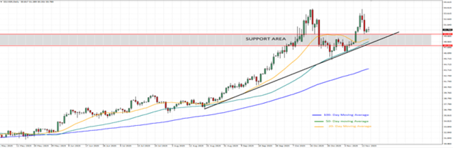 - UPTREND SINCE JANUARY 2025: After the March-April price pullback, silver prices have reinstated their uptrend, as depicted by the daily chart below and the solid uptrend line on the same chart. Since the beginning of 2025, the silver price has been rising solidly, hitting a fresh all-time high in October ($54.454), marking an increase of around 88%. However, it could also decline.