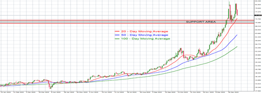 - SILVER PRICE HIT A NEW ALL-TIME HIGH ON DECEMBER 28, 2025 ($83.895). Silver price has broken out to a new all-time high of $83.895, confirming the strong uptrend since the beginning of 2025, trading well above moving averages. The zone between $72 and $70 has now become silver’s new support area.
