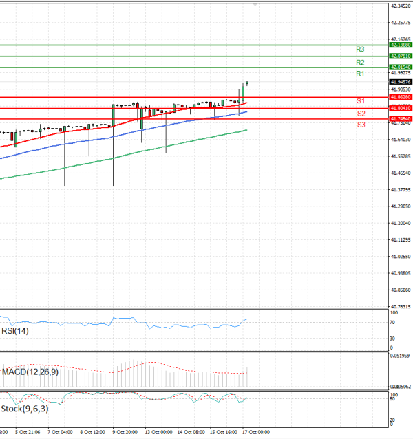 The USD/TRY moved firmly higher in the Asian session, despite the fact that the greenback lost ground against most currencies, as the Lira fell to another record low following the Turkish Central Bank’s vow yesterday to maintain its tight policy to push inflation down. In Turkey, the End of Year CPI Forecast for October will be posted (08:00 GMT+1). In the US, Industrial Production for September (0.1% expected) will be released (13:30 GMT+1).*