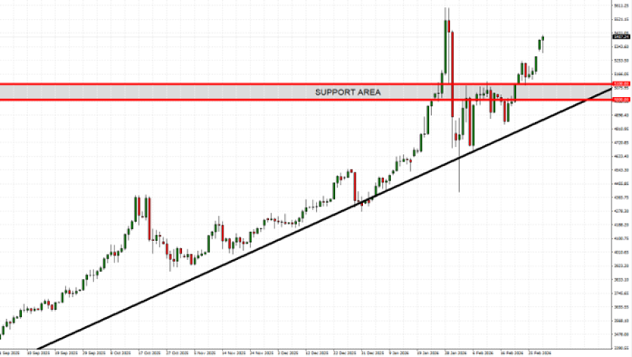 • SUPPORT AREA: $5,100 – $5,000. Gold prices have found a support zone in the range between $5,100 and $5,000. However, it could also decline.