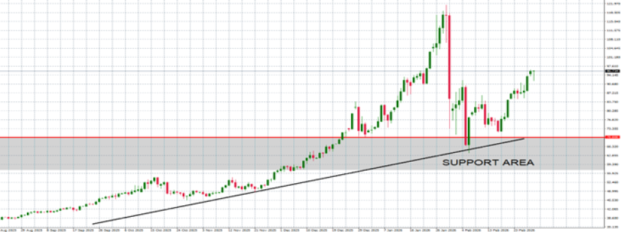 • SILVER: PRICE ACTION. The safe-haven metal did see increased demand initially, as investors sought refuge in silver, as they usually do in times of market distress. Silver prices rose initially by around $3, hitting levels not seen in one month, and above $96 per ounce.