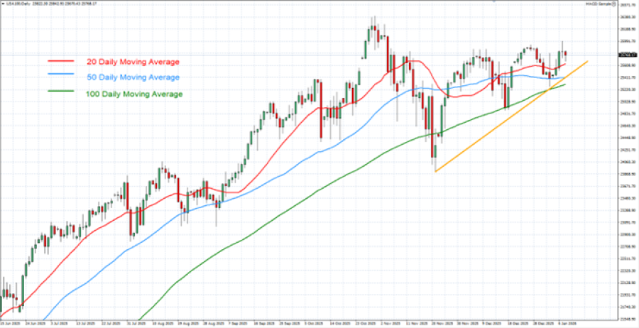 • FRIDAY, JANUARY 9 AT 13:30 GMT: U.S. NONFARM PAYROLLS (NFP) AND UNEMPLOYMENT RATE (DECEMBER). A softer NFP reading and a rise in the unemployment rate would reinforce expectations for Fed interest rate cuts, which typically support upside momentum in the tech-heavy USA100.