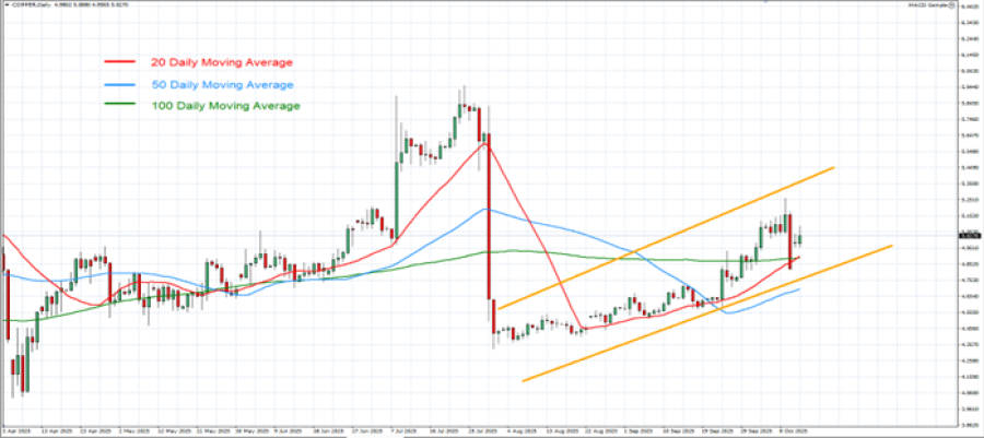 • UPTREND AND RECOVERY SINCE EARLY AUGUST 2025: Copper prices have traded within an uptrend channel since early August, as depicted by the daily chart below. However, there remains a risk of a potential breakout below this level if market conditions change.