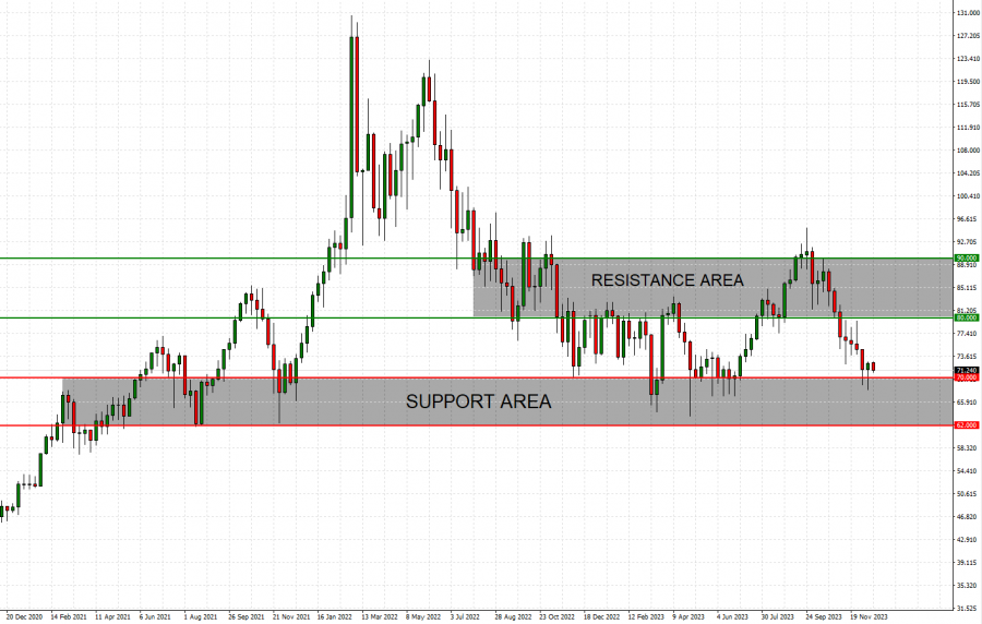 Graph (Weekly): Crude Oil (February 2021- December 2023)