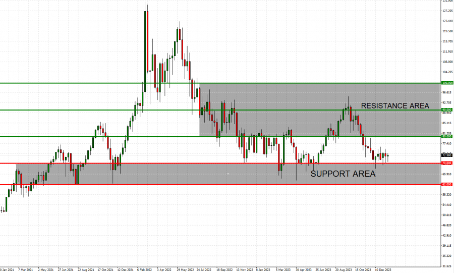 Graph (Weekly): Crude Oil (February 2021- January 2024)
