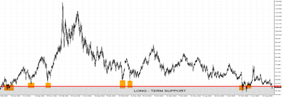 - LONG-TERM SUPPORT AREA BELOW THE PSYCHOLOGICAL MARK OF $60: Crude oil price has recently tested levels below $60, which has been acting as a support area since early 2021.