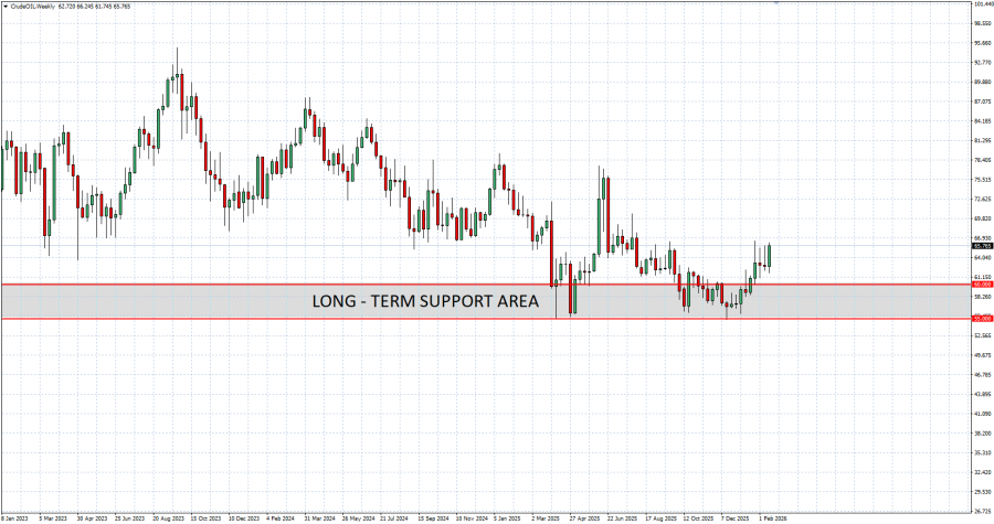 • BREAKING (DECEMBER 16, 2025): CRUDE OIL HAS TESTED ITS LOWEST RATE SINCE FEBRUARY 2021 ($54.865). The crude oil price has tested its lowest rate since February 2021. Currently, crude oil is trading above the $65 mark, floating above its longer-term support area between $55 and $60. However, it could also decline.