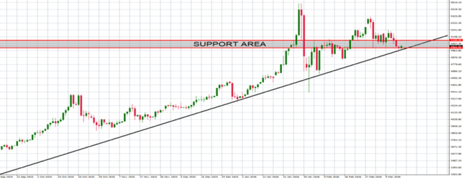 • SUPPORT AREA: $5,100 – $5,000. Gold prices have found a support zone in the range between $5,100 and $5,000. However, it could also decline.