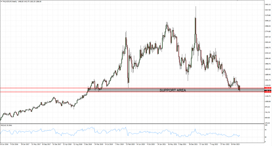 - STRONG SUPPORT AREA AT $1250- $1350: Palladium has tested the area of $1250- $1350 only five times since 2019.