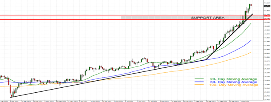 • BREAKING (OCTOBER 10): US PRESIDENT TRUMP THREATENS NEW TARIFFS ON CHINA. Rising geo-political tensions increase safe-haven demand for silver. US President Trump threatened additional 100% tariffs on China, totaling to 130% on a post on his platform Truth Social. The tariffs are set to start on November 1.